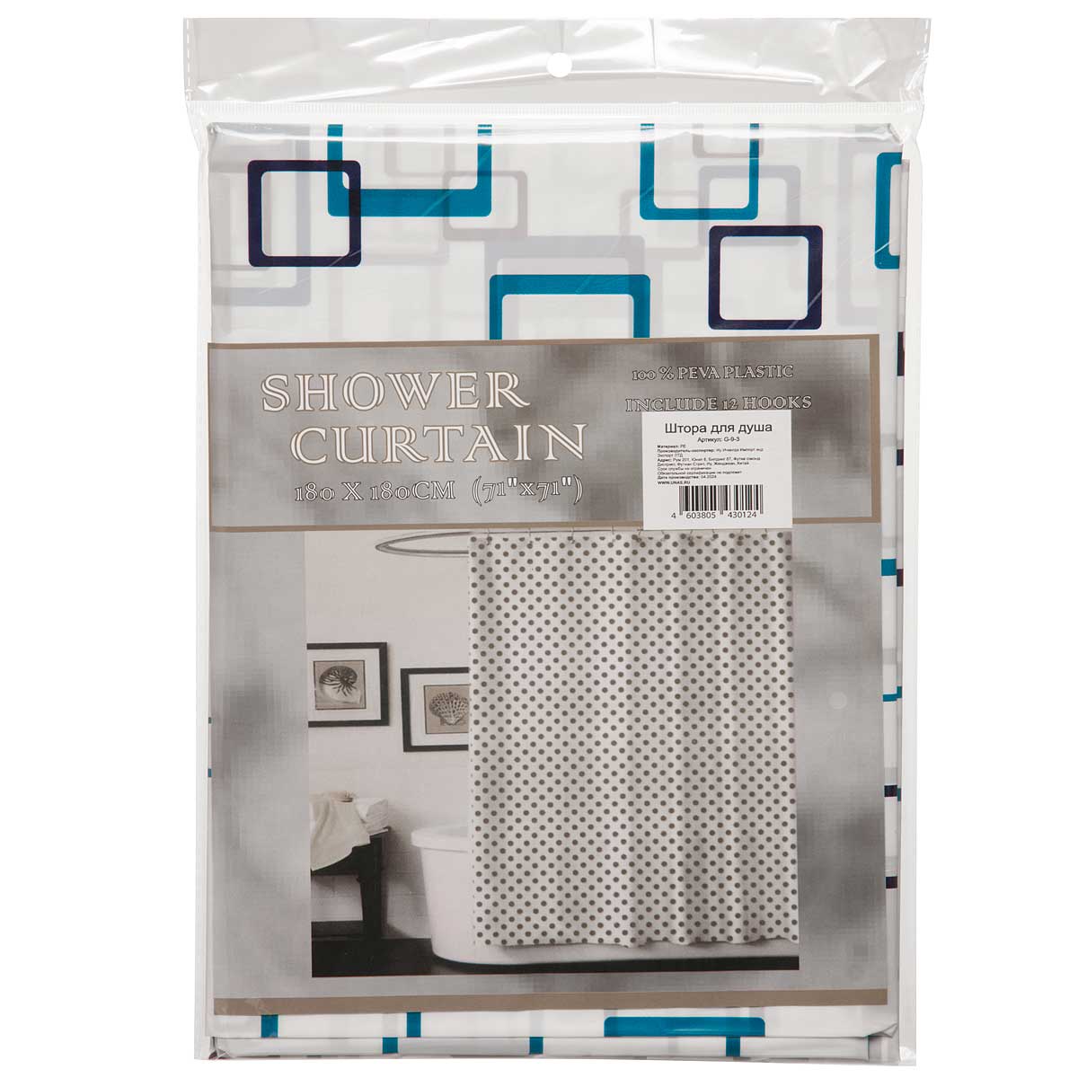 Шторы для ванной с рисунком ПВХ 180х180 см G-9-3NA