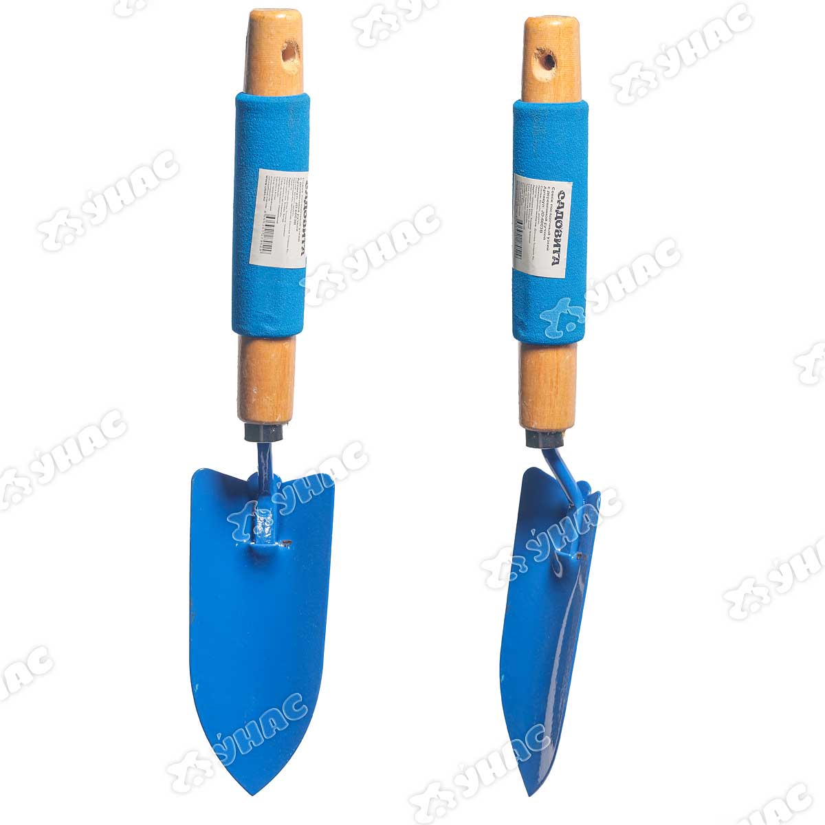 Посадочный совок, узкий, сталь, деревянная ручка, применяется для высаживания рассады и цветов на клумбы и грядки