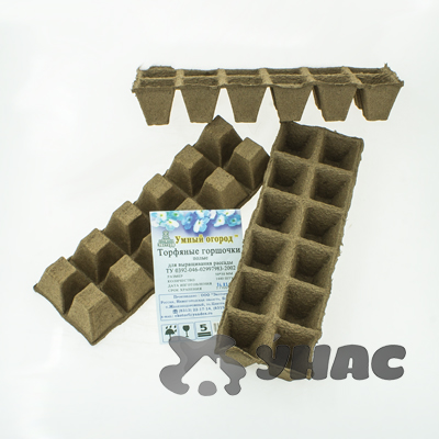 Торфяные горшочки квадратные "Умный огород" Экоторф 50x50 мм 12 шт 1 кассета