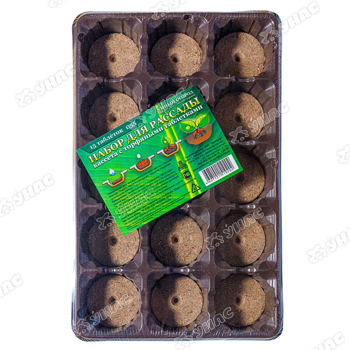 Кассета с торфяными таблетками "Набор для рассады" 55мм 15 таблеток Экоторф